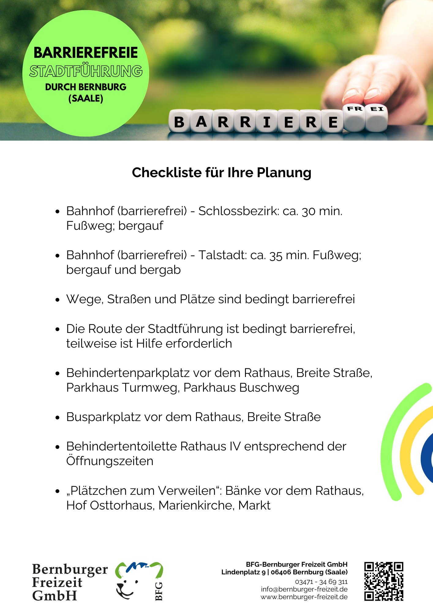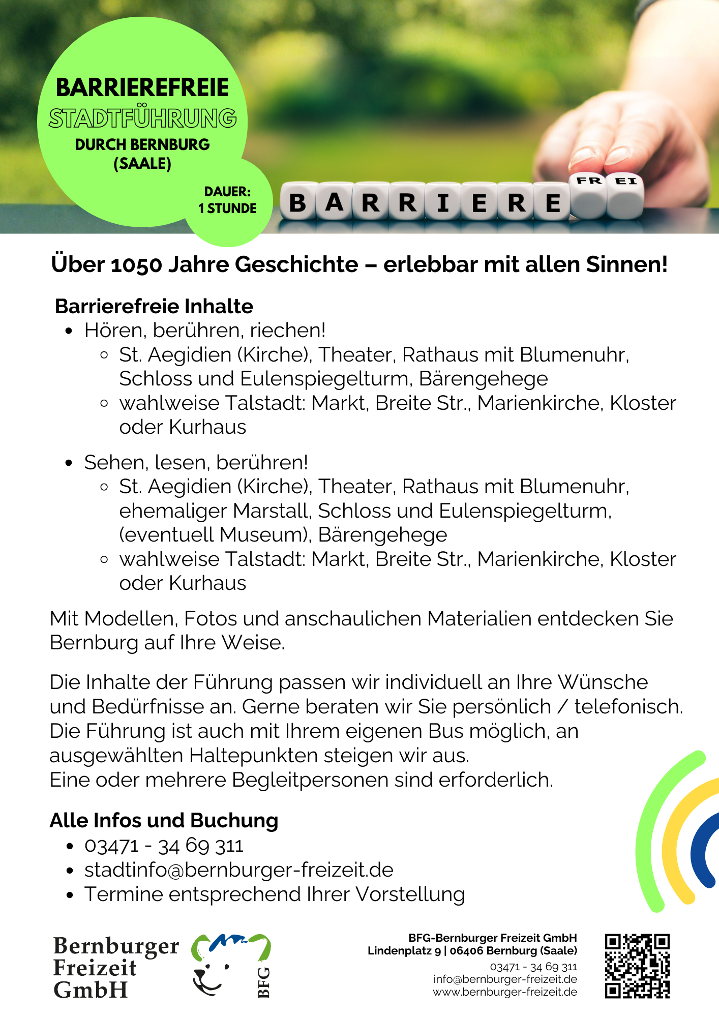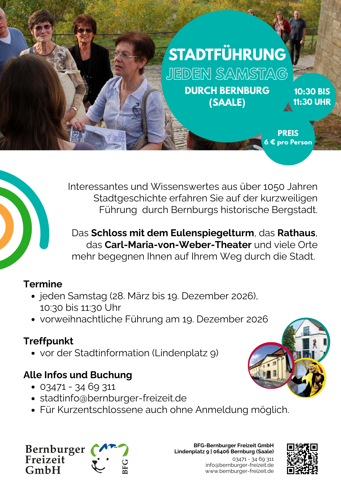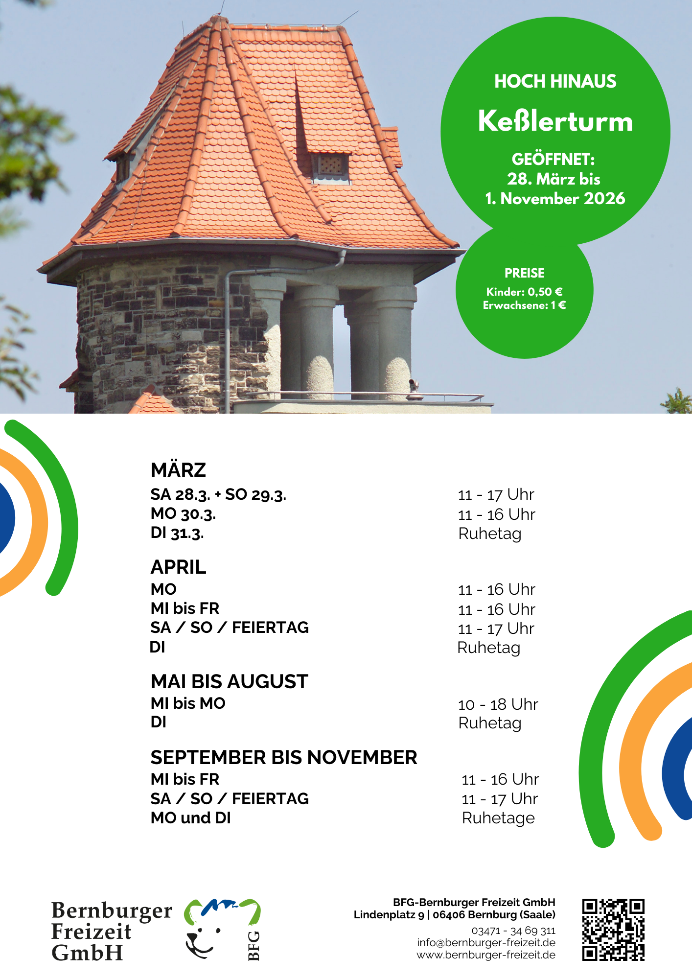 Wir freuen uns auf eine bunte, erlebnisreiche Saison 2026! Wir starten am 28.3. – endlich wieder Krumbholz-Bahn fahren, den Keßlerturm besteigen, länger im Märchengarten Paradies und im Tiergarten verweilen. Wie wäre es mit einer Fahrt mit der MS Saalefee oder unserer Fähre Einheit? Oder aber ihr kommt zu unseren Stadtführungen – auch barrierearm möglich! Und am Ende wartet das Schloss mit unserem Museum Schloss Bernburg. Wir freuen uns auf euren Besuch bei uns. Alle Infos findet ihr auf dieser Webseite und natürlich auch drüben bei Instagram und Facebook.